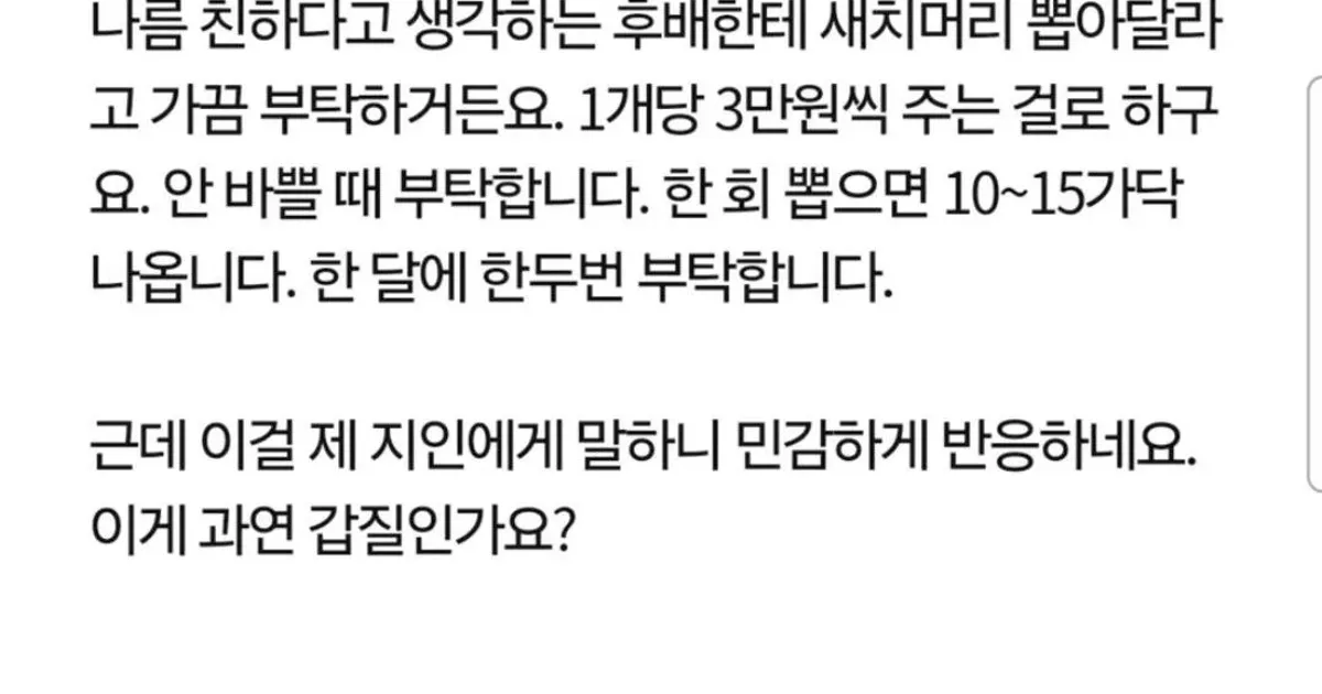 직장후배에게 새치 뽑아달라는게 갑질인가요? ,,